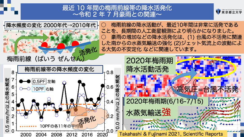 Takahashi, H.G. and Fujinami, H., 2021: Recent decadal enhancement of Meiyu–Baiu heavy rainfall over East Asia. Sci. Rep., 11, 13665, doi:10.1038/s41598-021-93006-0. [Web Page]
