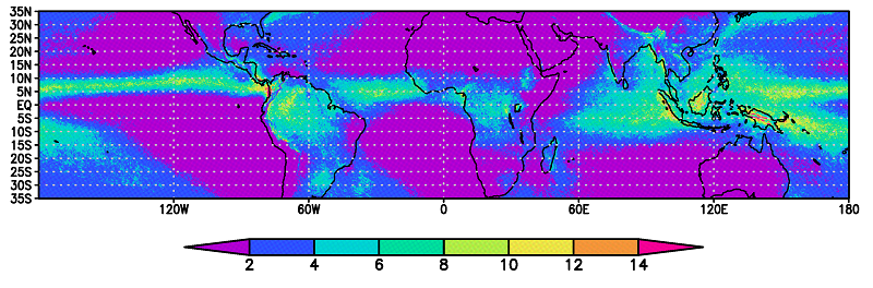 - エアロゾルー雲相互作用の観点から、熱帯域におけるエアロゾルの光学的厚さ、雲の有効半径、降水量の年々の共変動について統計的に調べた。